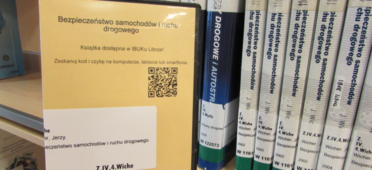 W Bibliotece na Wolnym Dostępie umieściliśmy kody QR książek elektronicznych dostępnych na platformie iBUK Libra. Kody zostały nadrukowane na specjalnie przygotowanych okładkach. Wszystkie okładki są w kolorze kremowym, kody QR znajdują się na stronie tytułowej.